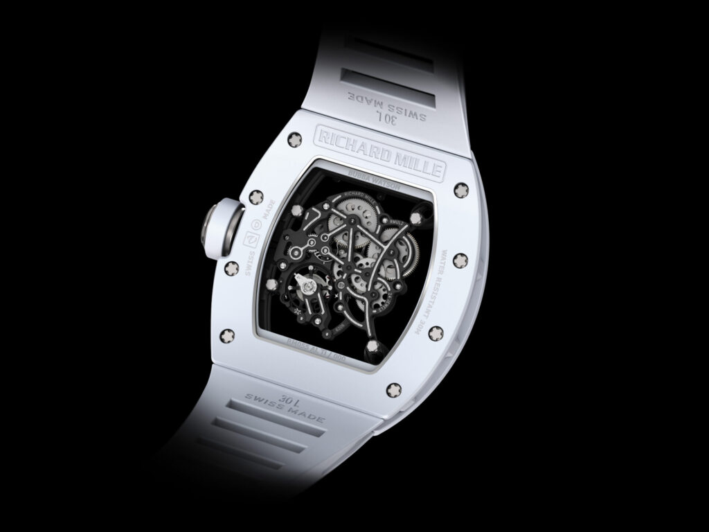 ムーブメントの複雑な動きを余すことなく視覚的に楽しむことができます。これは、彼の個性をリスペクトしつつ、リシャール・ミルらしい洗練されたスポーティーさを表現しています。