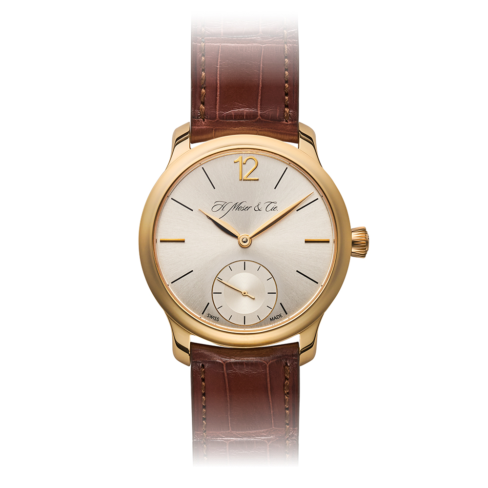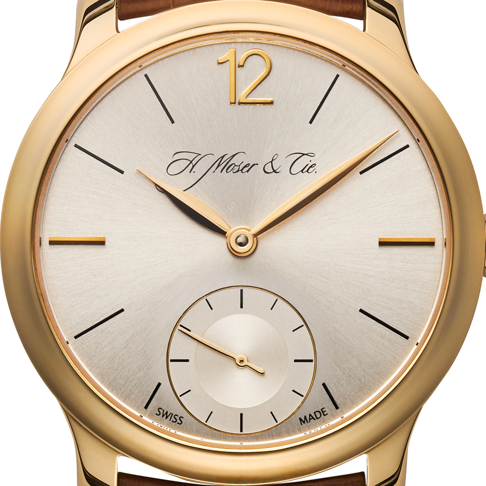 現在のH.モーザーでは珍しいシルバー色の文字盤とRGケースとの組み合わせがクラシックな雰囲気を演出します。