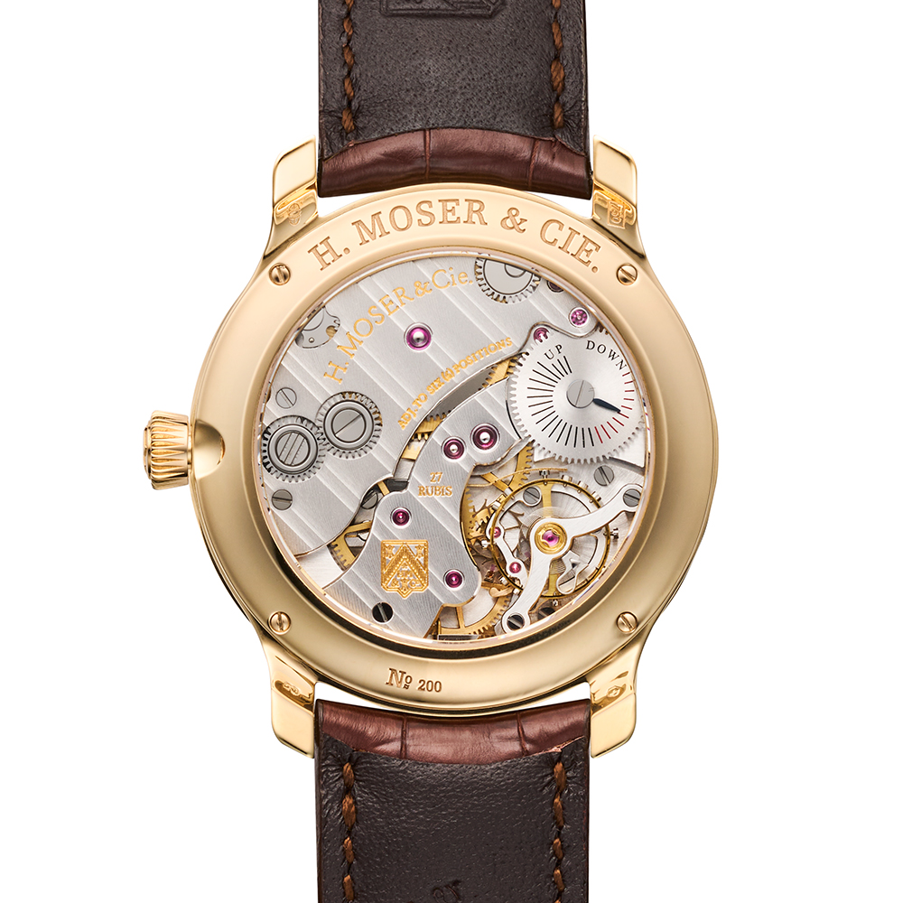 H.モーザーの再興以降、長きにわたり基幹ムーブメントであったHMC321。インジケーターもムーブメント側に備わっています。