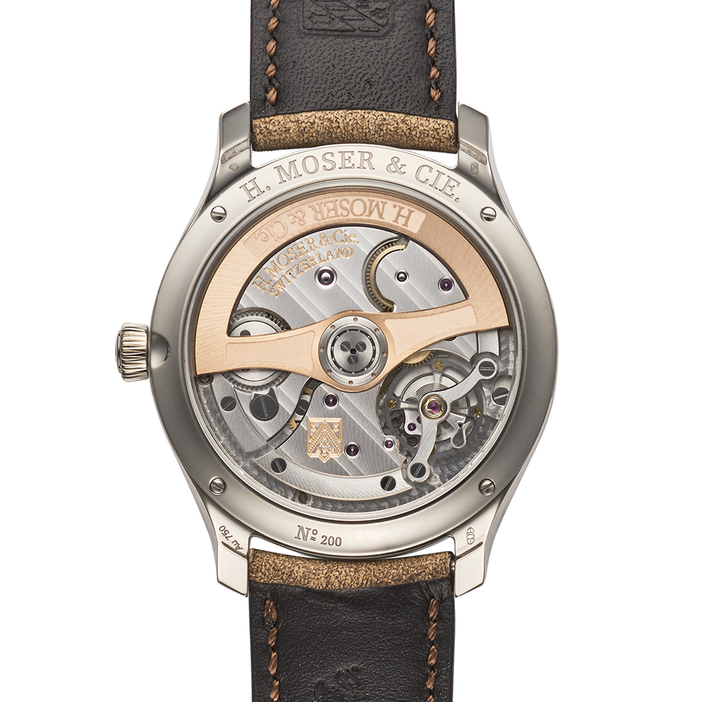 H.モーザーのアイデンティティとなるケースサイドのデザインは、ポリッシュとサテン仕上げを交互に施した優美な仕上げ。力強いデザインの中に洗練さを兼ね備えます。