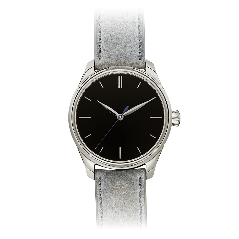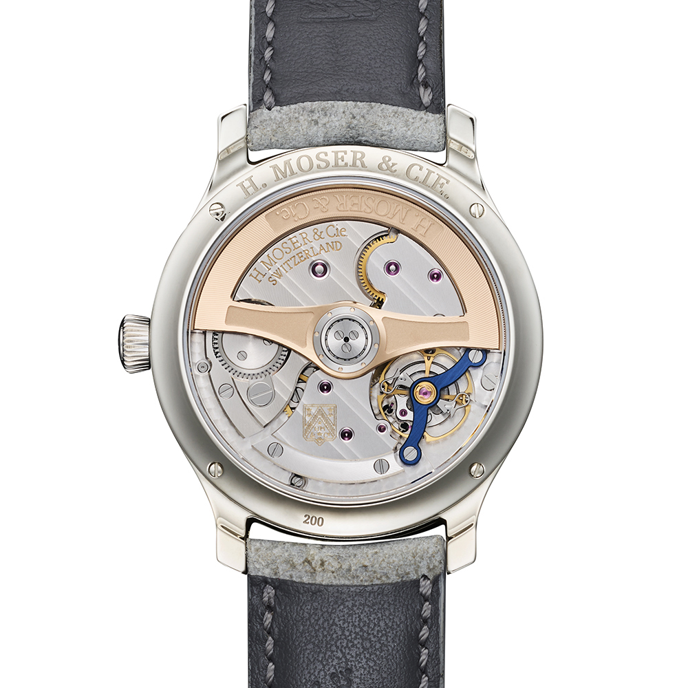| 機能・特徴 | ラチェット式両方向自動巻き上げシステム オリジナル ダブルヘアスプリング搭載 H.moserロゴの刻印が施されたローター モーザーストライプ仕上げ パープルのセンターセコンド秒針 ブルーのバランスブリッジ |