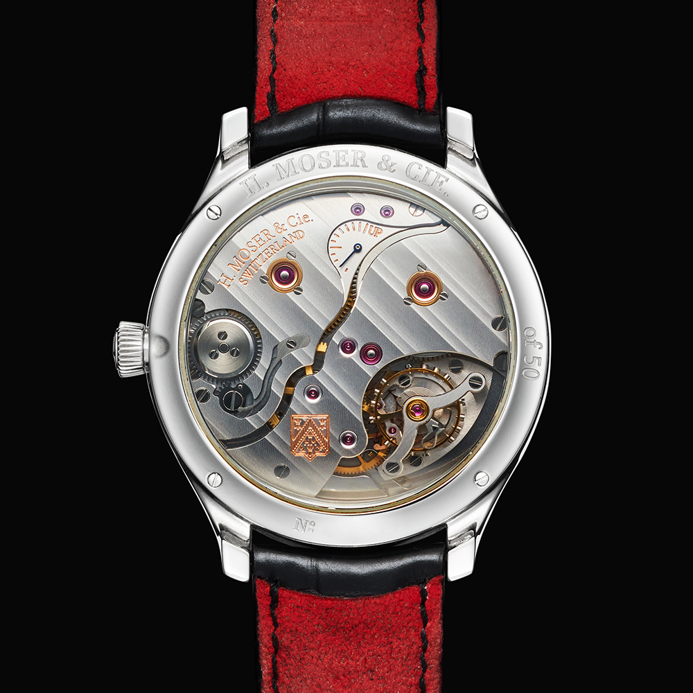 自社製手巻きキャリバー HMC 801を搭載。約 7 日間のパワーリザーブを確保し、パワーリザーブ表示はムーブメント側にあります。