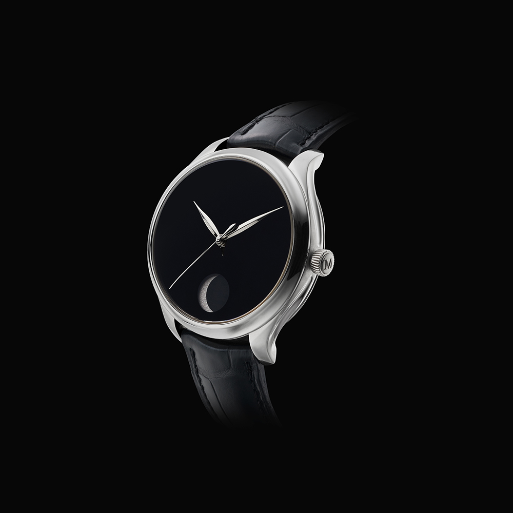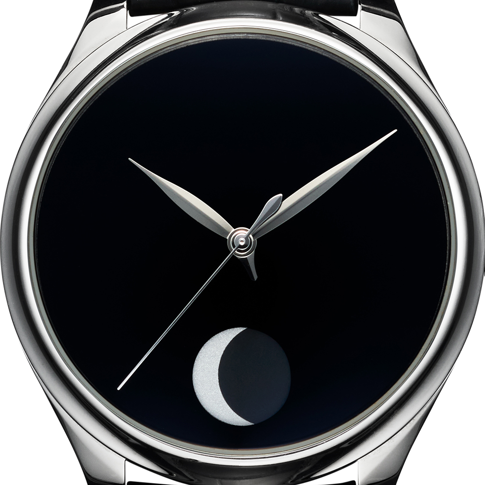 月の軌道周期は平均で 29.53059 日です。H.モーザーの高精度なムーンフェイズは、その周期を極限まで再現しており、その誤差は 1 日あたりわずか 0.23 秒、1027.30 年後に 1 日という高精度なモデルです。