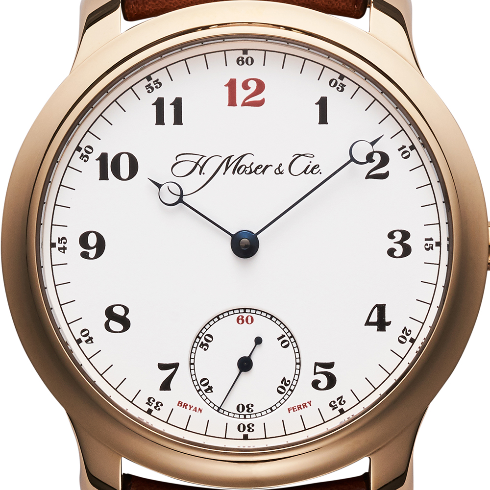 H.モーザーのアーカイブから導かれたクラシックなデザイン。6時位置には慎ましく”Bryan Ferry"の印字が施されています。
