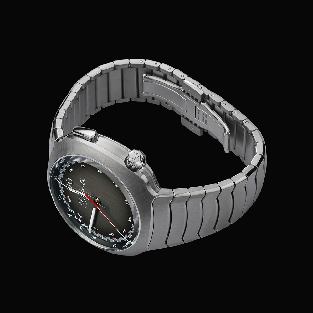 ブランドコンセプトのミニマリズムを反映し、すべての機能をセンター表示に集約した初の自動巻きフライバック クロノグラフを搭載。