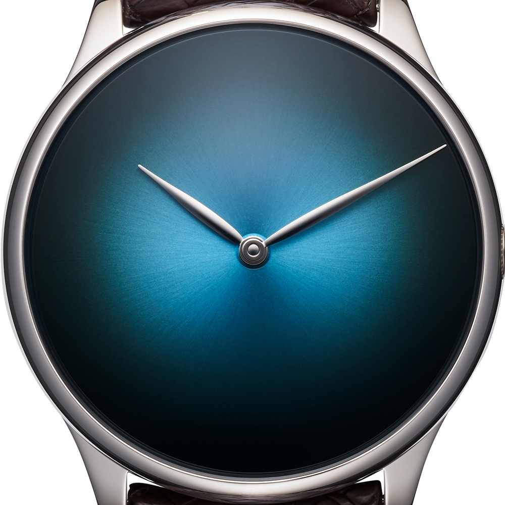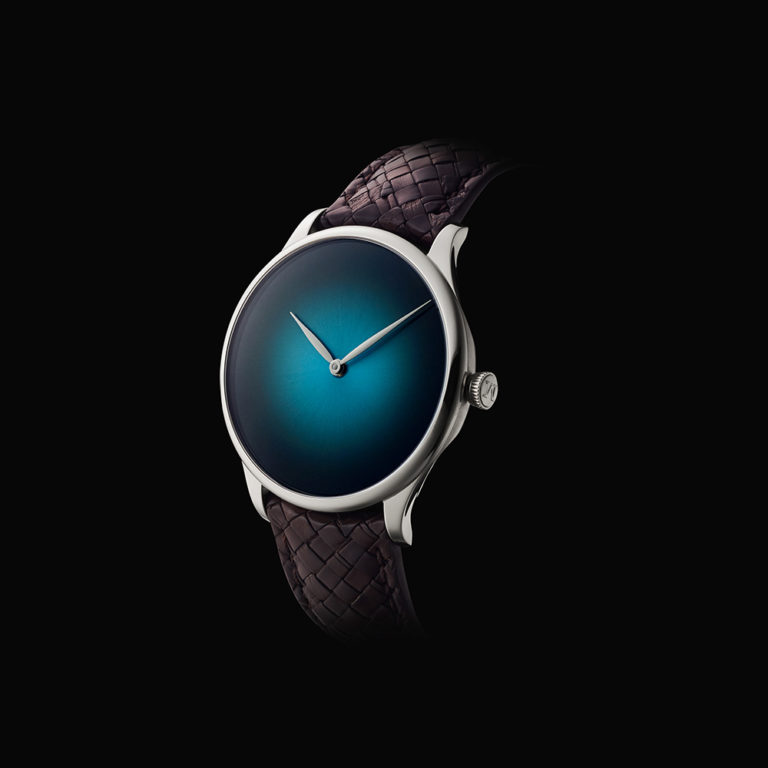 H.モーザーのコンセプトである「Less is More」を反映したミニマルなウォッチ、ベンチャー・コンセプト。この時計は2018年に登場し、美しいブルーラグーンという新しいカラーが初めて搭載されたウォッチです。