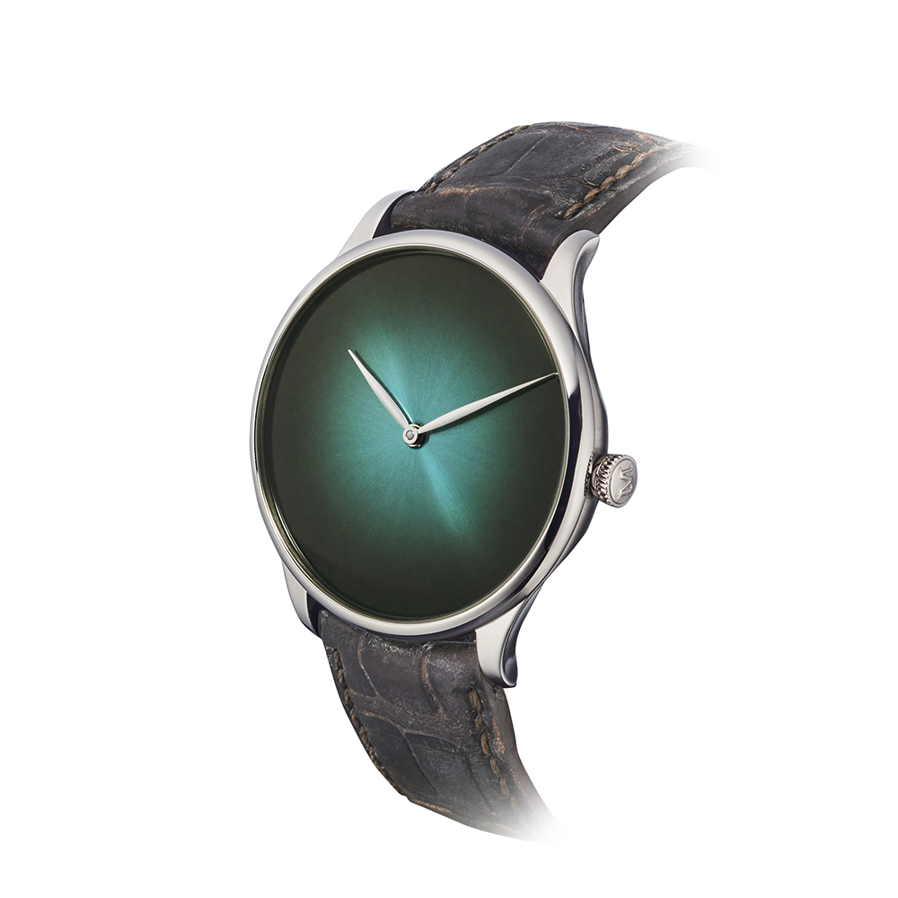 H.モーザーのコンセプトである「Less is More」を反映したミニマルなウォッチ、ベンチャー・コンセプト。この時計は2018年に登場し、美しいブルーラグーンという新しいカラーが初めて搭載されたウォッチです。
