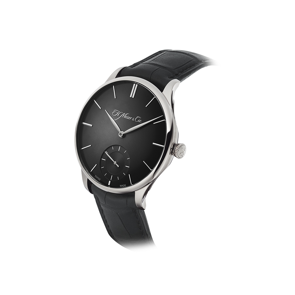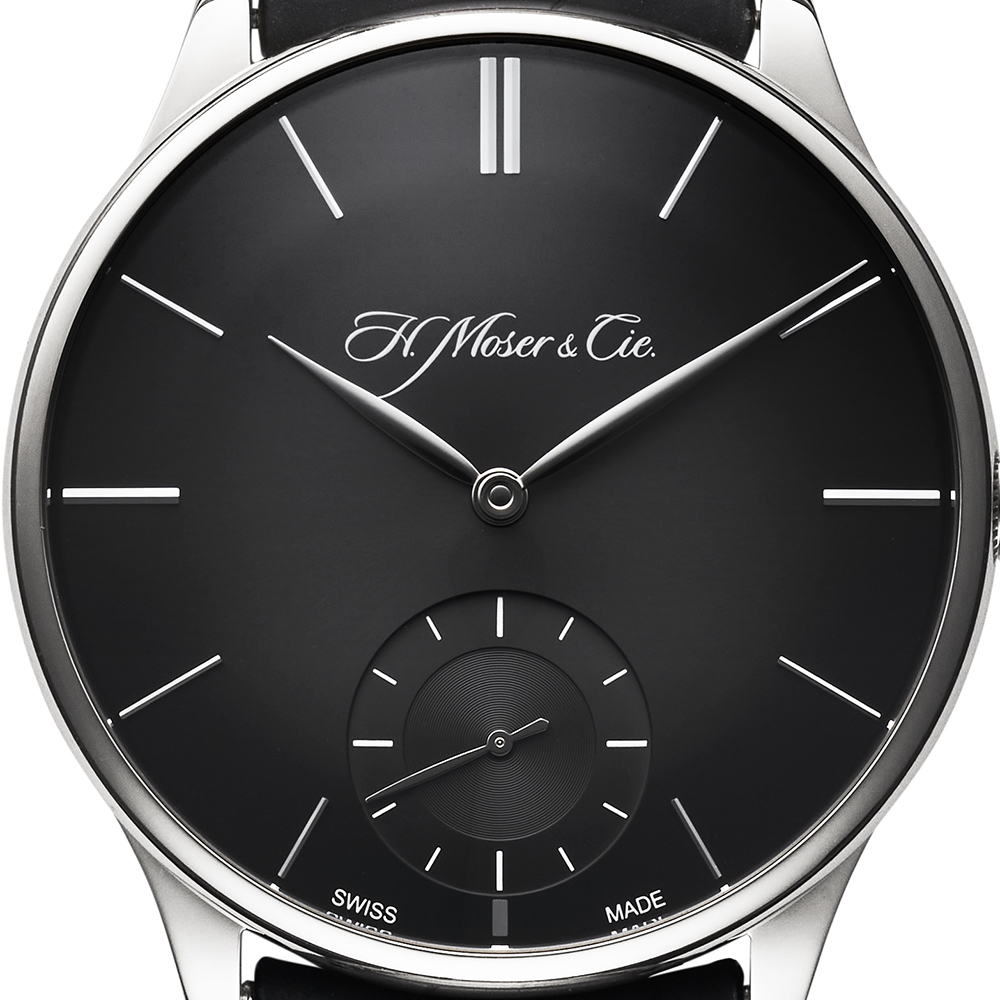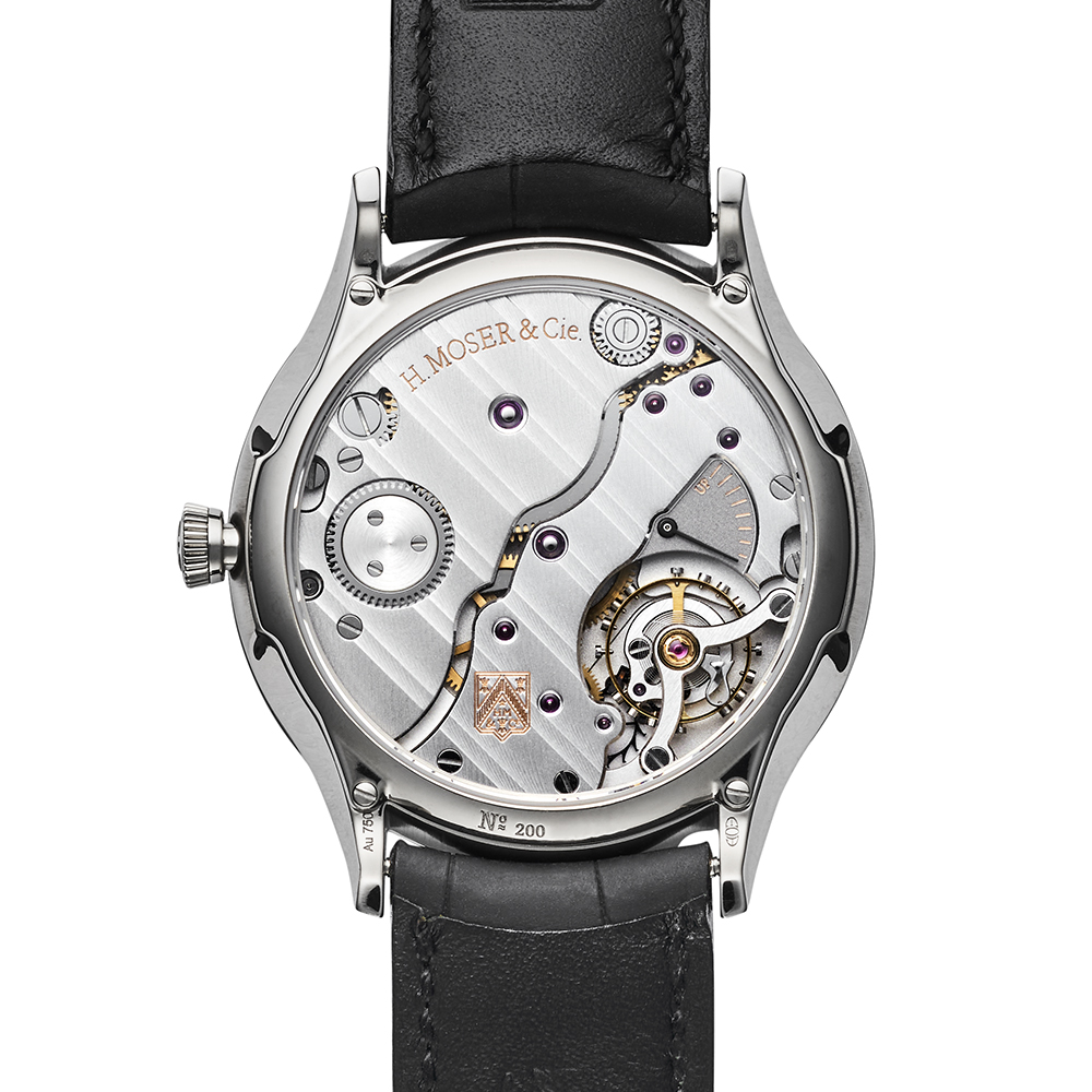 ケースサイドにはモーザーの他のコレクションと同様に、ポリッシュとサテンの仕上げが施され、ドーム状のサファイアクリスタルと相まって、曲線美が際立つプロポーションをしています。