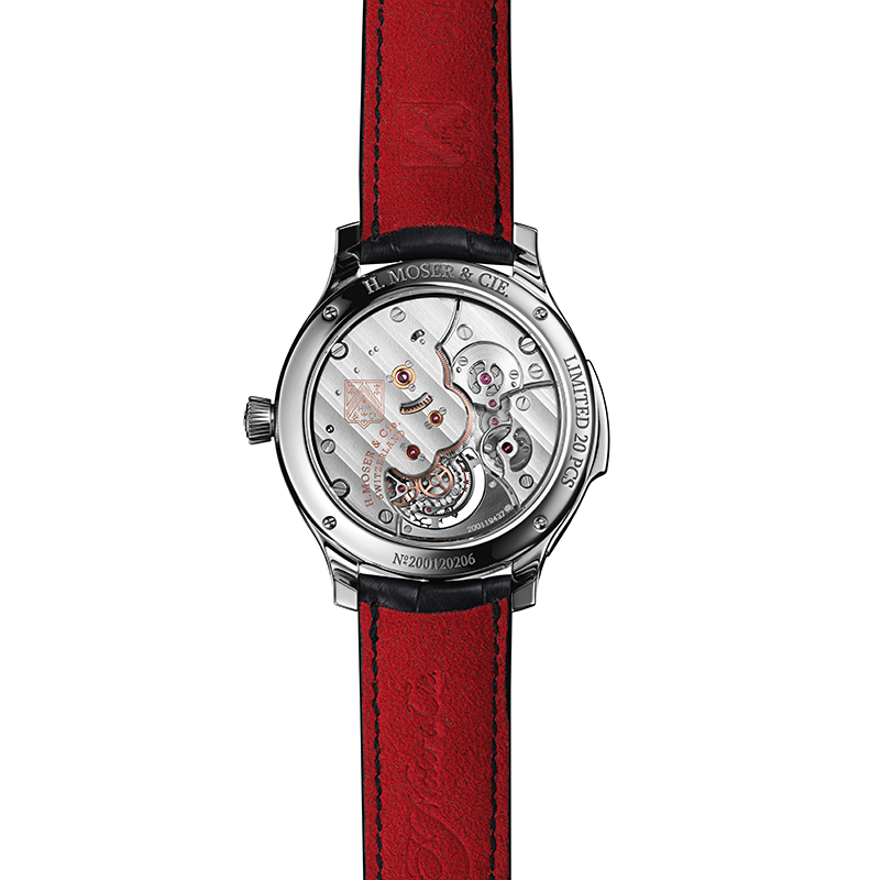 通常時刻を音で知らせるミニッツリピーターは、時計の裏側にあり、ダイアル側から間左折することはできません。H.モーザーはこれを表舞台で表現し、その精微な動きを楽しむことができます。