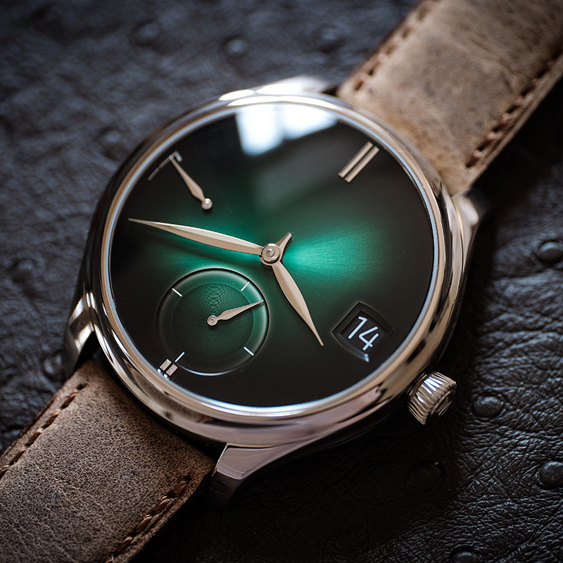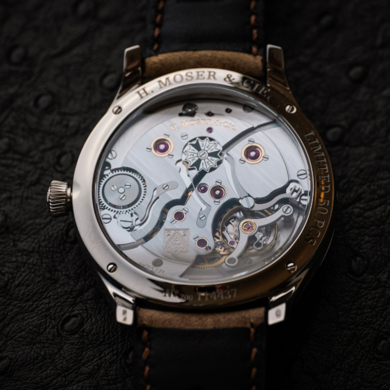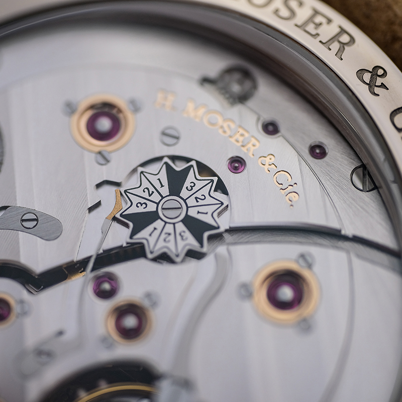 HMC341の設計を見直し、更なるブラッシュアップを図ったHMC800を搭載。。4年に一度の閏年表示はムーブメント側に設置されており、必要に応じて確認が可能。パワーリザーブインジケーターはダイアル側に設置されています。