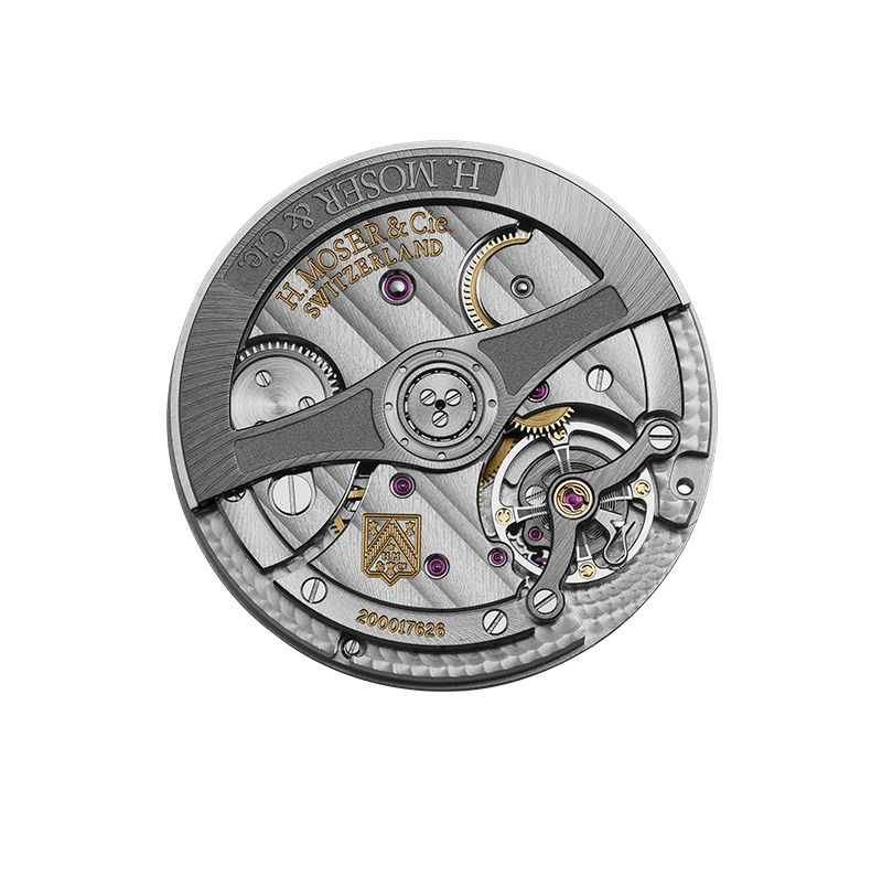 自社開発製造による自動巻きムーブメントのCal.HMC 200。ラチェット・システムによる両方向巻き上げ方式を備え、比重の高い希少金属の大型ローターにより高い巻き上げ効率を誇ります。