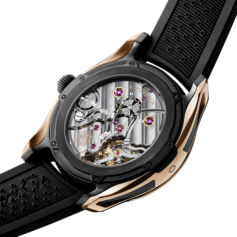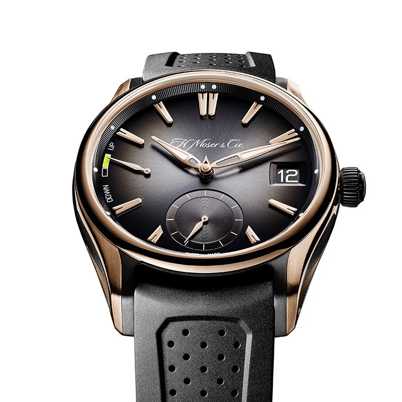H.モーザーの自社開発製造によるHMC800を搭載。4年に一度の閏年表示はムーブメント側に設置されており、必要に応じて確認が可能。パワーリザーブインジケーターはダイアル側に設置されています。