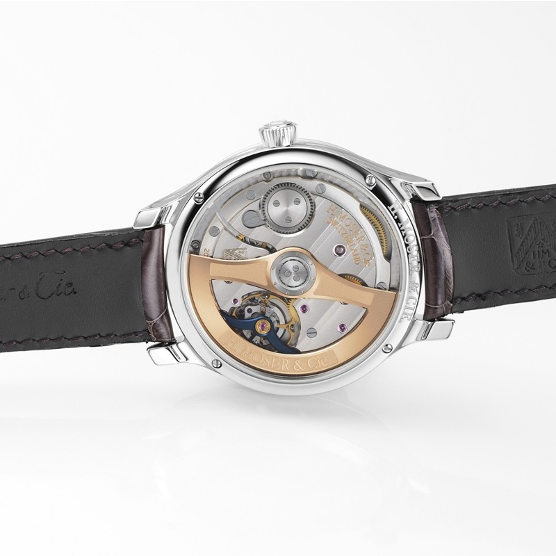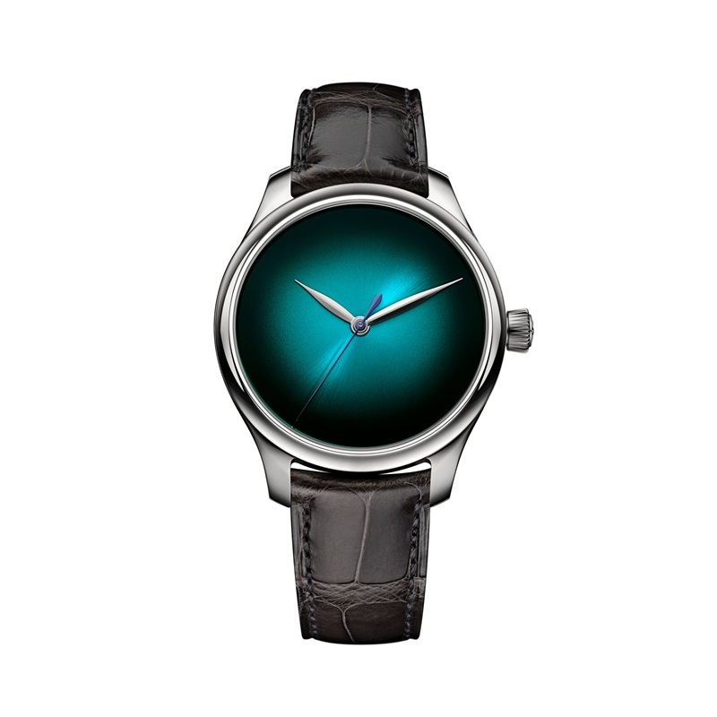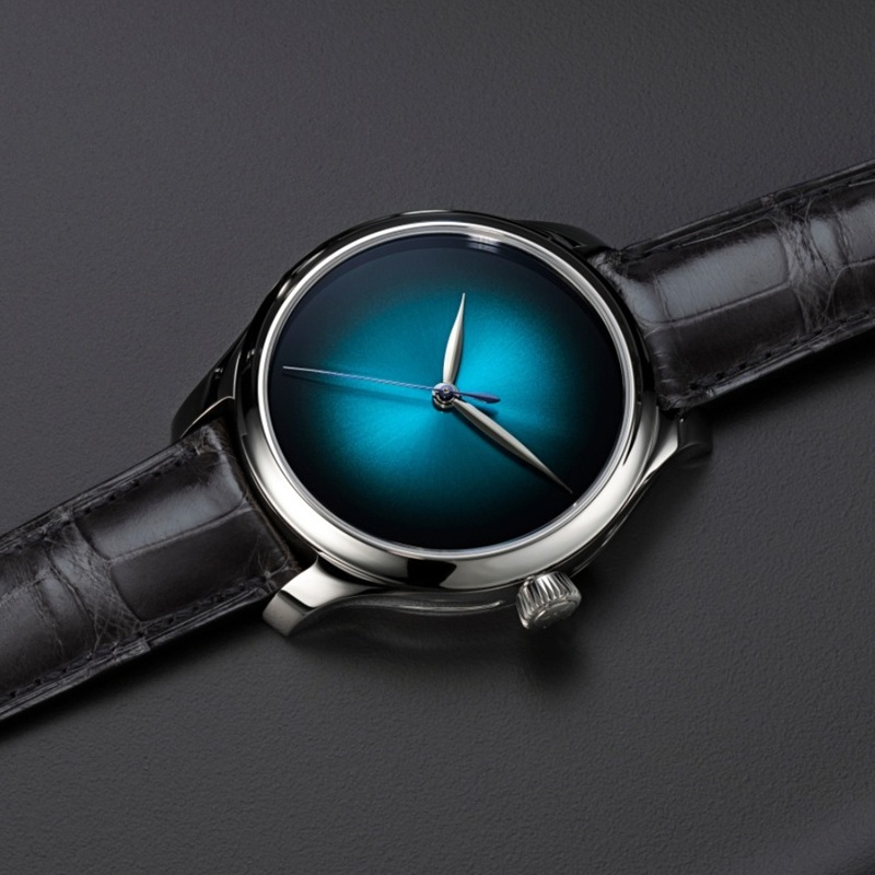 H.モーザー社のミニマルな美学に沿ってデザインされたこのモデルは、控えめな魅力のブルーラグーン フュメダイアルによって、より美しさが際立たっています。