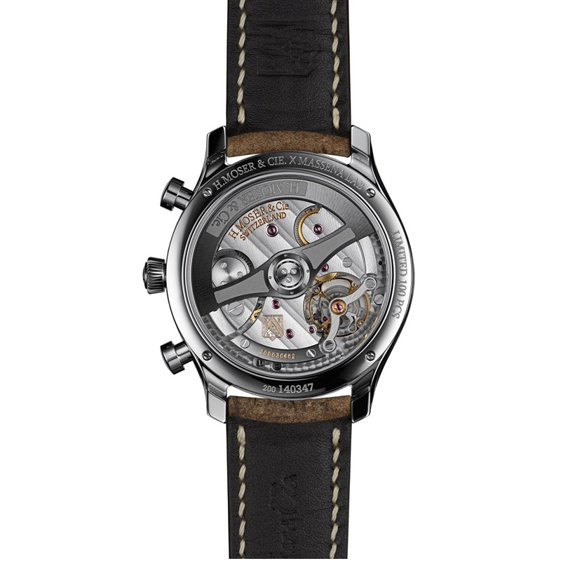 | 機能・特徴 | デュボア・デプラ社製クロノグラフ モジュール搭載 時針および分針 センタークロノグラフセコンド 3時位置にスモールセコンド 9 時位置に45分クロノグラフ タキメーター クーズーストラップ 世界限定100本 |