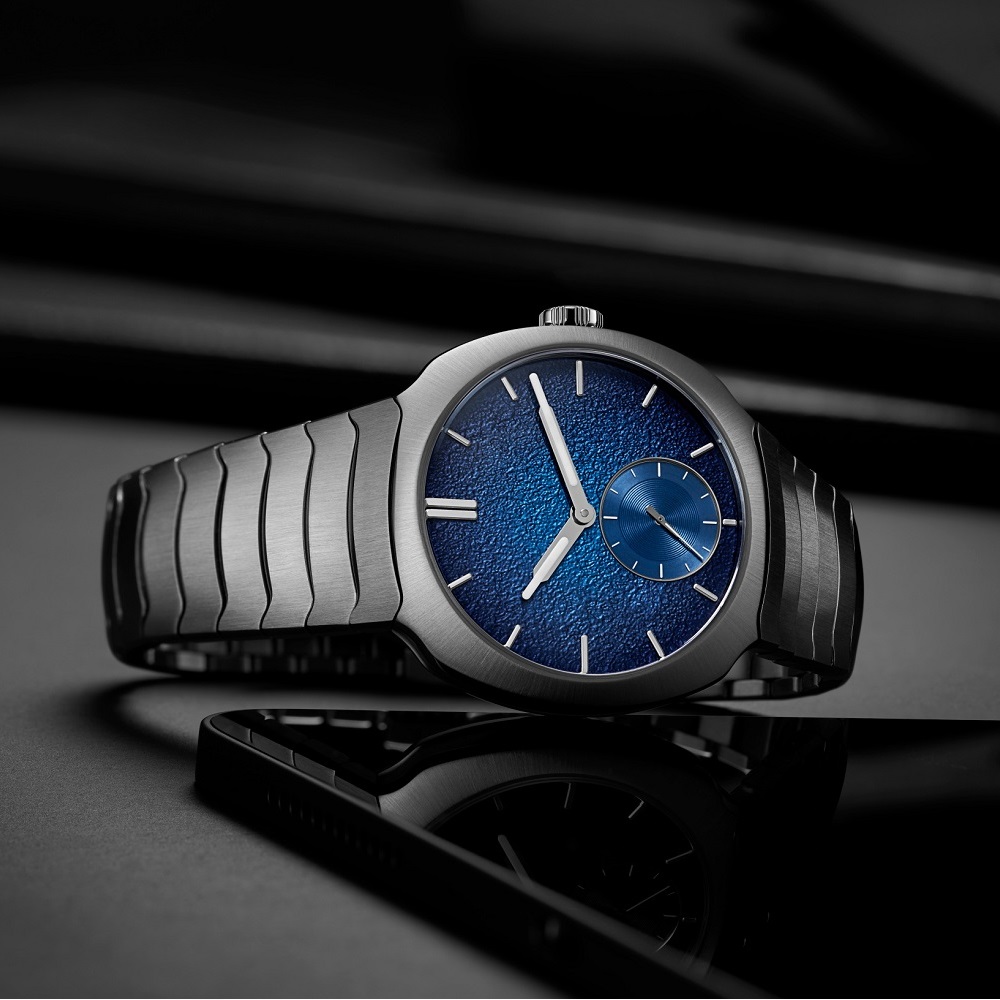 「アクアブルー」と名付けられたこのダイアルは、熟練した職人の芸術的な技により、ブランドを象徴する有名なフュメダイアルを新たに解釈したもので、上品で洗練された高性能な芸術作品です。