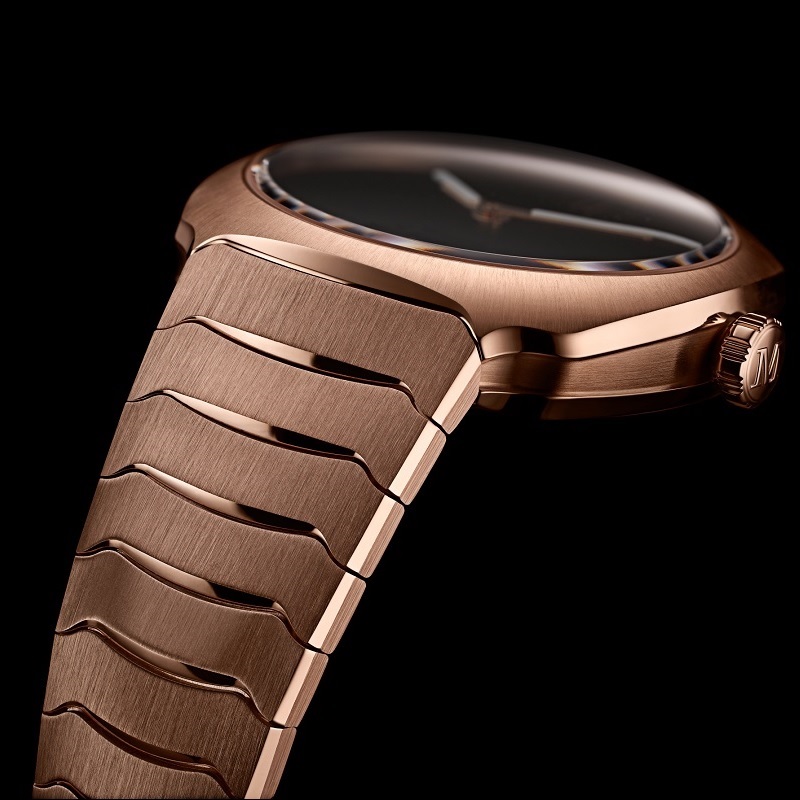 ストリームライナーの特徴である丸みを描く優美なカーブのクッション型ケースと連結式リンクが一体型になったしなやかなブレスレットは、隣接する面に施したポリッシュとサテンの異なる仕上げによってその魅力を生み出しています。